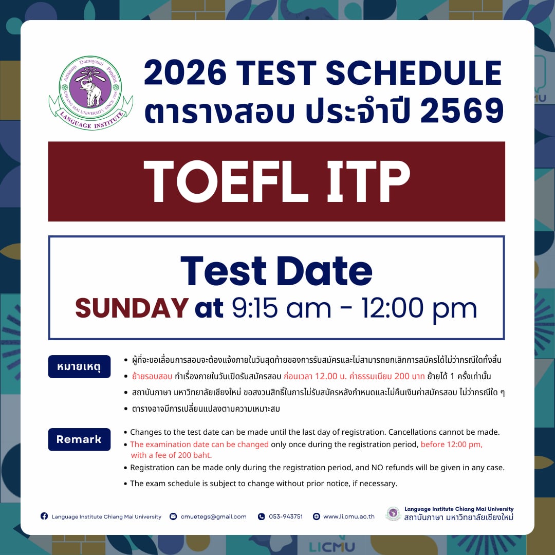 คะแนน TOEFL ITP มีอายุ 2 ปีนับจากวันสอบ