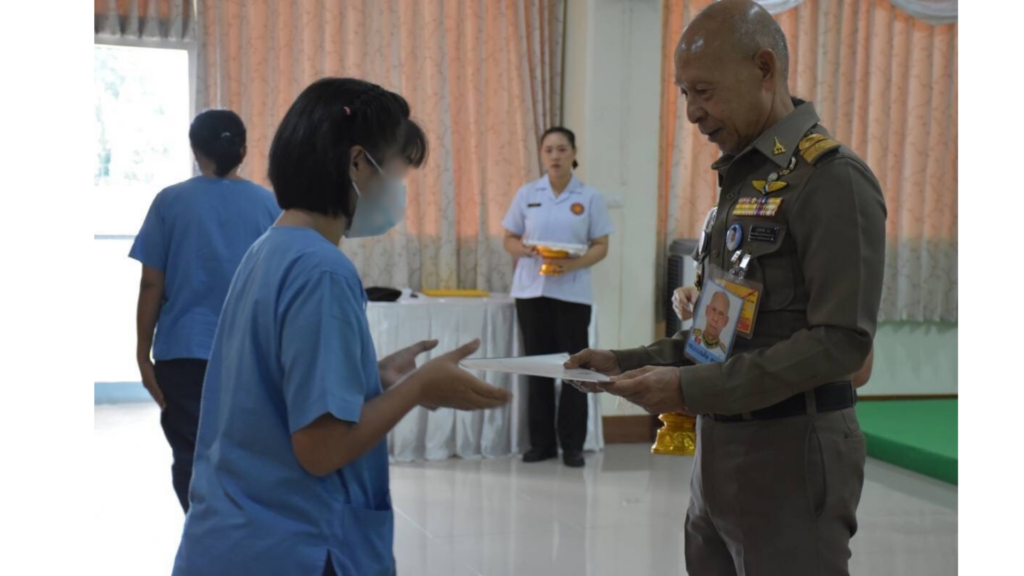 Besides, the project team was honoured to have Air Chief Mashal Somkid Sukbang, H.R.H.’s personal senior chamberlain 908 and committee vice-chairman of the Royal Initiative of Her Royal Highness Rajasarini Siribajra’s Enhancing Lives for Female Inmates: ELF, to award the trainees certificates on July 12th, 2024.