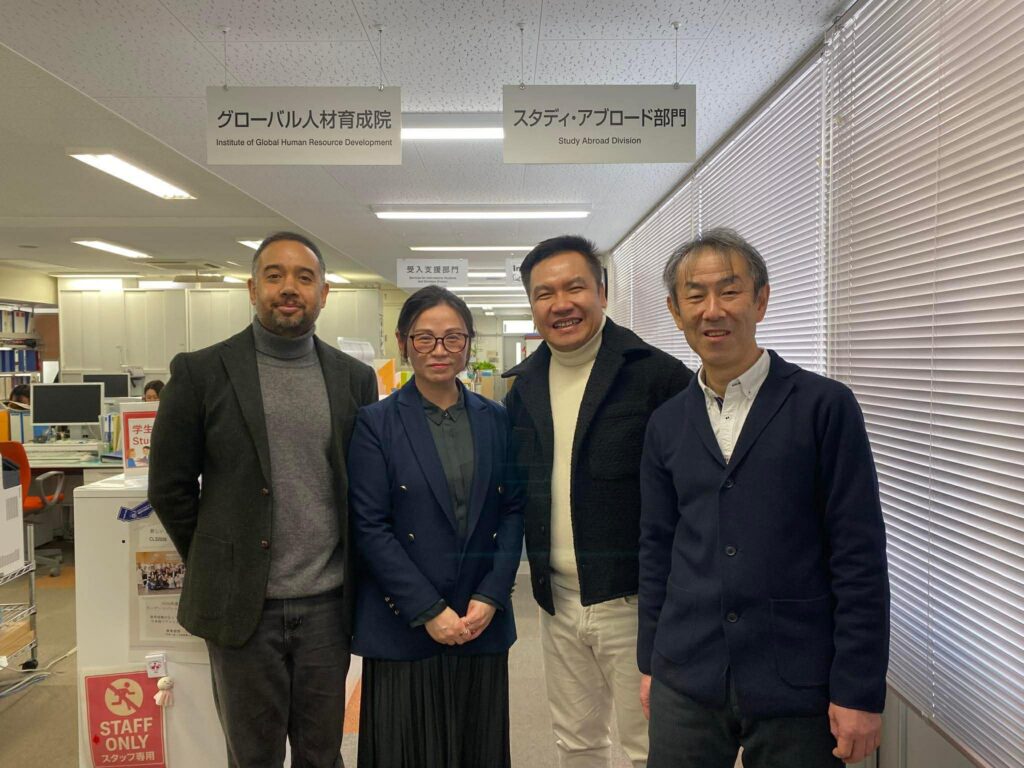 On 15 January 2026, Language Institute’s team , led by Assistant Professor Sakorn Ruanklai, Director of Language Institute, together with Mr. Karim Ali Hussain, General Manager, paid a courtesy visit to Mr. Yuchi Oda, Director of the International Center, and his team at Okayama University, Okayama City, Japan.