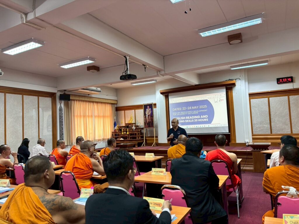 The program was held from May 22–24, 2025, at Lamphun Buddhist College, Mahachulalongkornrajavidyalaya University, in Lamphun Province. Its objective was to enhance university lecturers’ competencies in English reading and writing, aligned with the B1 level of the Common European Framework of Reference for Languages (CEFR).