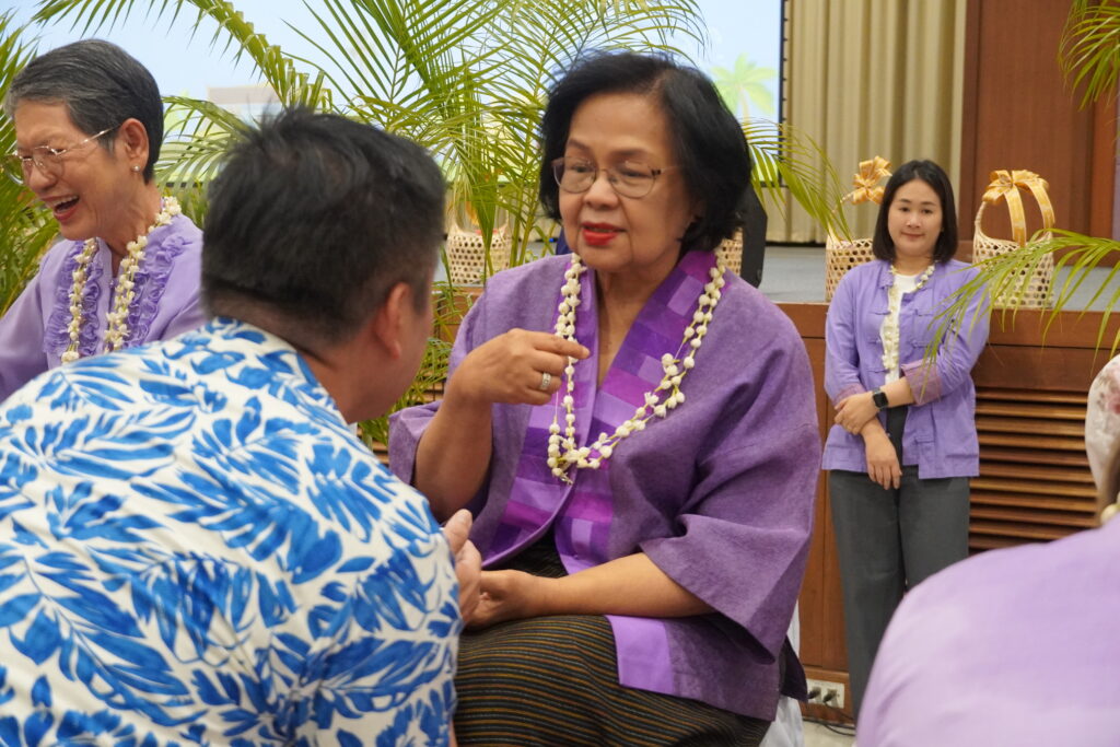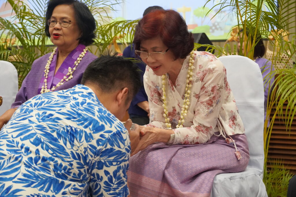 On 25 April 2025 at the Chiang Mai University Auditorium, Assistant Professor Sakorn Rueanklai, Director of the Language Institute of Chiang Mai University, together with the Institute’s administrators and staff, took part in the traditional Dan Hua ceremony honoring the President of the University Council, former university presidents, and senior faculty members of CMU. This ceremony, held as part of the Songkran festival, is a meaningful way to express gratitude and reverence, while strengthening our shared bond with the beautiful Lanna cultural heritage.