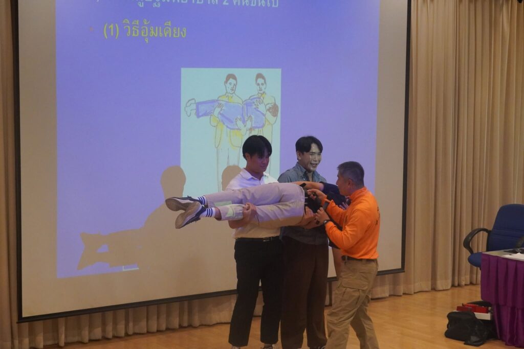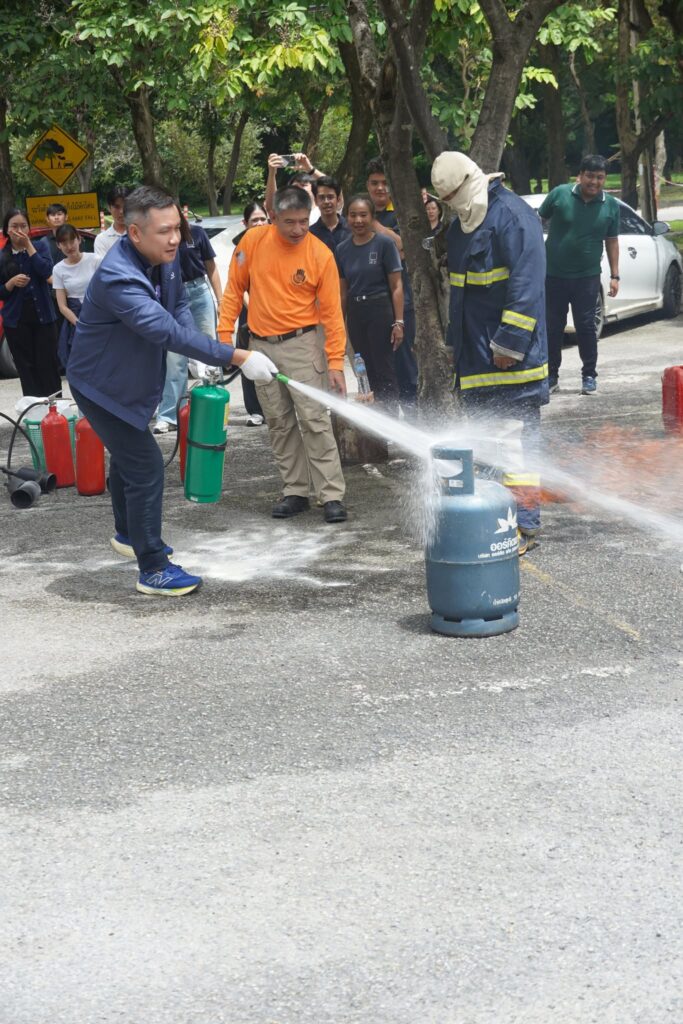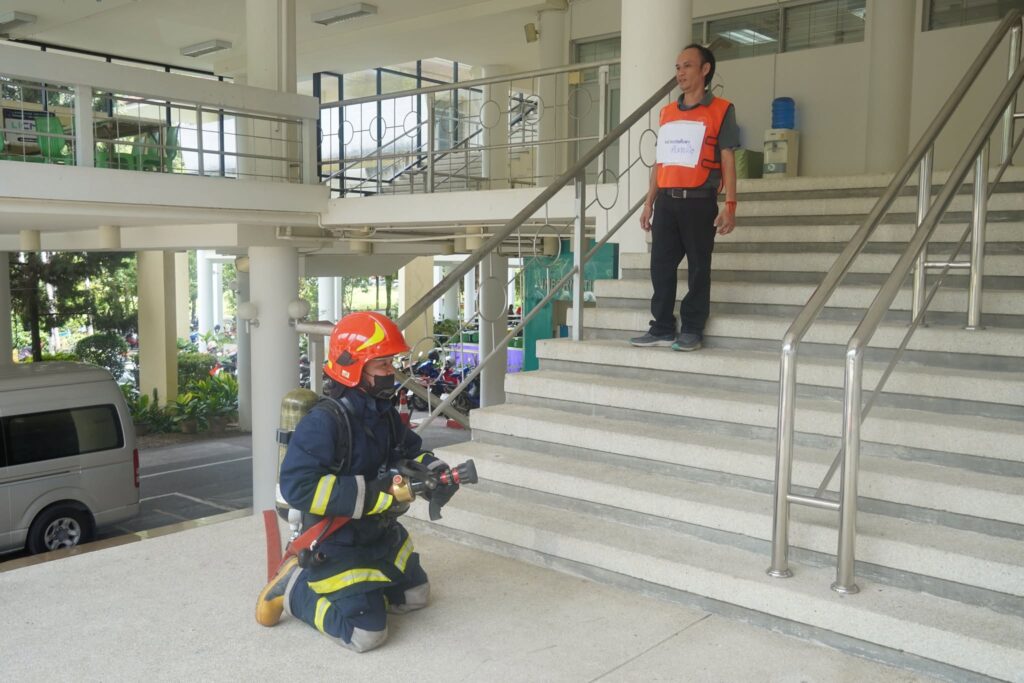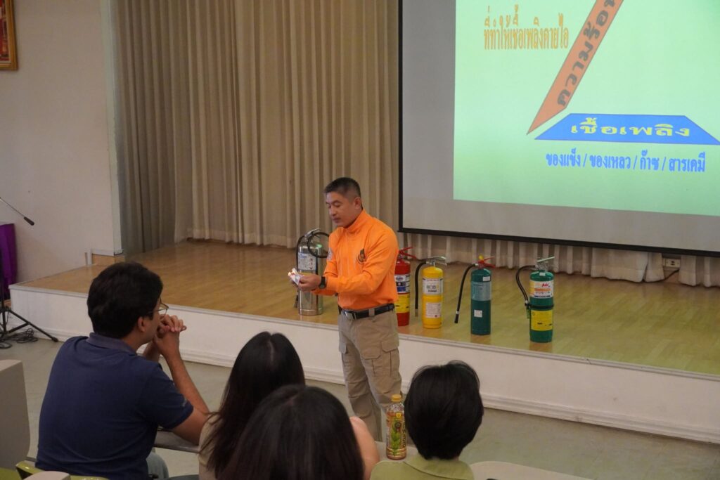 On September 3, 2025, from 8:30 a.m. to 4:00 p.m., the Director, the Manager, together with staff members of the Language Institute and the Confucius Institute, participated in fire prevention and earthquake evacuation training. The session was conducted by expert instructors from Suthep Municipality, Chiang Mai, providing both knowledge and hands-on practice to enhance awareness, strengthen safety, and improve effective emergency response.