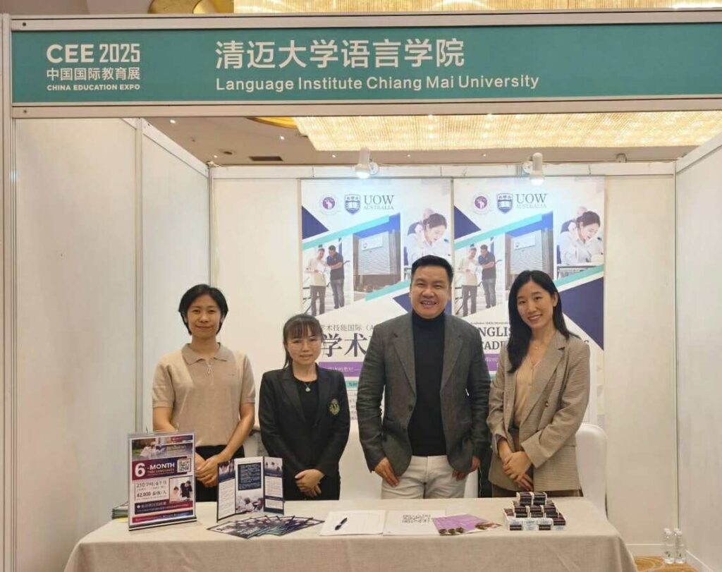 Assistant Professor Sakorn Ruanklai, Director of the Language Institute, Chiang Mai University (LICMU), led the institute’s team to attend the China Education Expo 2025 in Chengdu on November 6, 2025. The team promoted LICMU’s Thai and English programs and study opportunities to prospective students and educational partners, strengthening academic collaboration between Thailand and China.